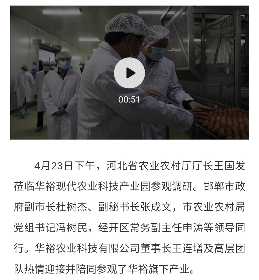 河北省農業(yè)農村廳廳長王國發(fā)蒞臨華裕參觀調研