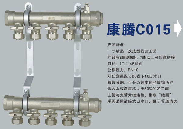 【產品型號】康騰C015款40方紅沖一體銅分水器